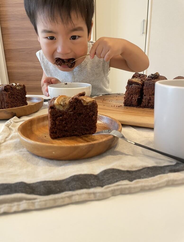 まずは先日作って家族に大ヒットだった、米粉のケーキ。