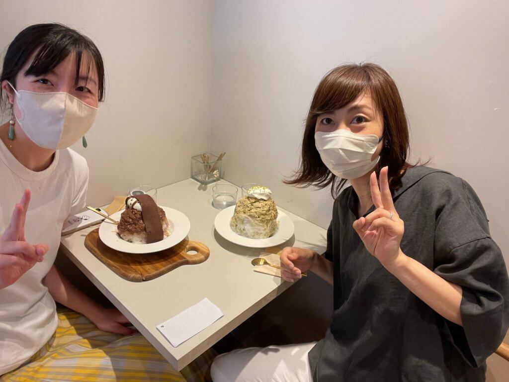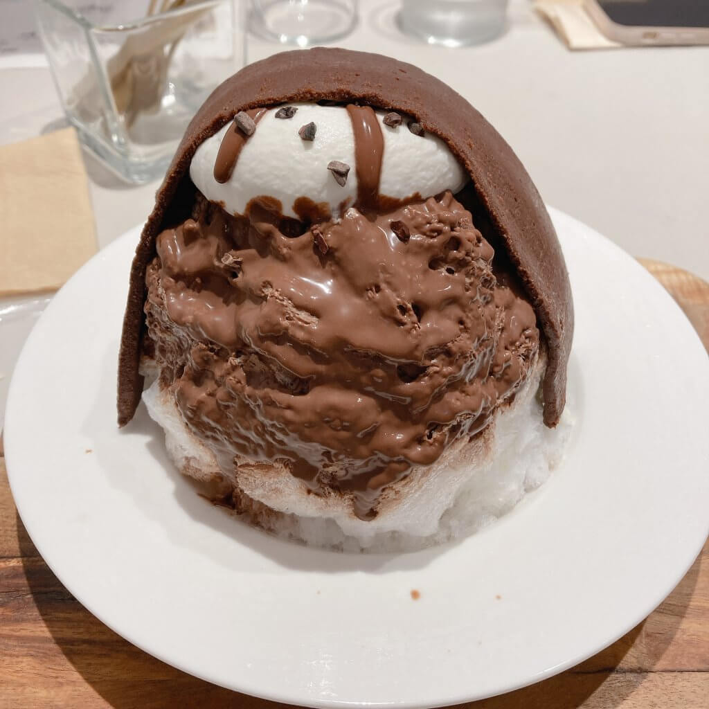 ひりみちゃんと一緒にボンヌカフェのチョコレートかき氷(濃厚チョコレートケーキ)を食べに行きました!!