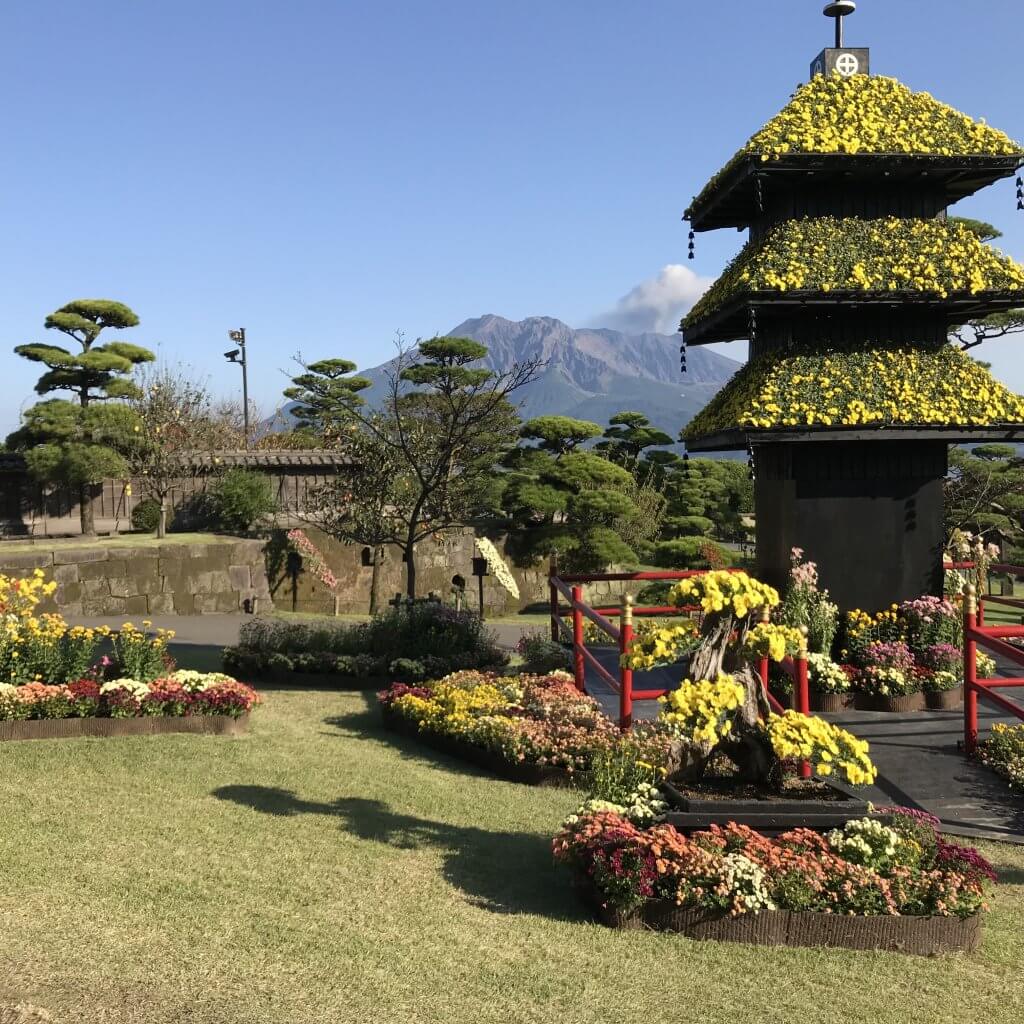 仙厳園は1658年に薩摩藩主であった島津家の別邸として築かれたそうで、NHK大河ドラマの『西郷どん』のロケ地として使用されたことでも有名。