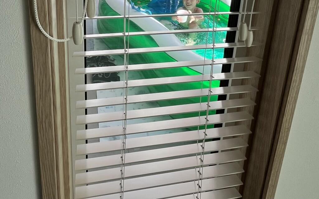 スモークを貼るという案もありましたが、テラスの様子が見えなくなってしまうので我が家にはブラインドがあっているようです。