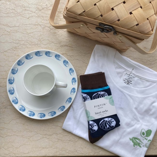 友人から頂いた点心グッズ。肉まんカップ&ソーサーにソックスにTシャツ。可愛すぎやしませんか?とても私らしくて嬉しい。ありがとうございます。