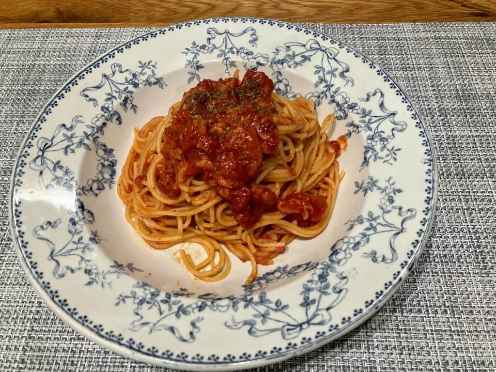 トマト缶1個で作る究極のシンプルバスタにしました。