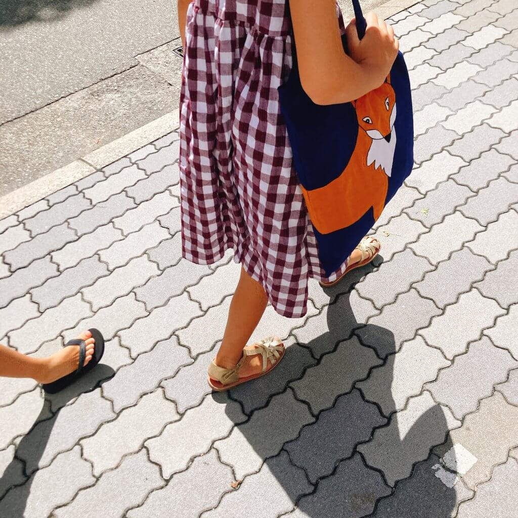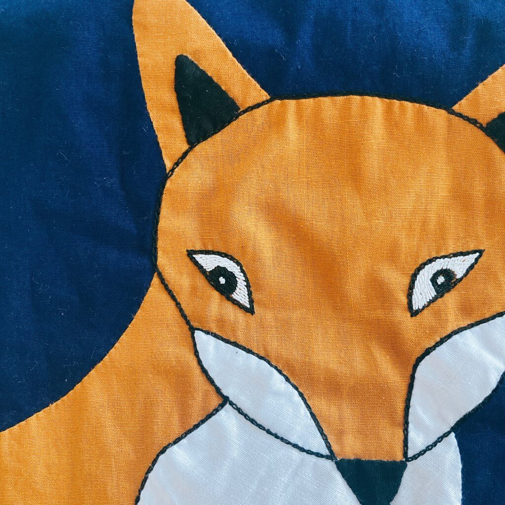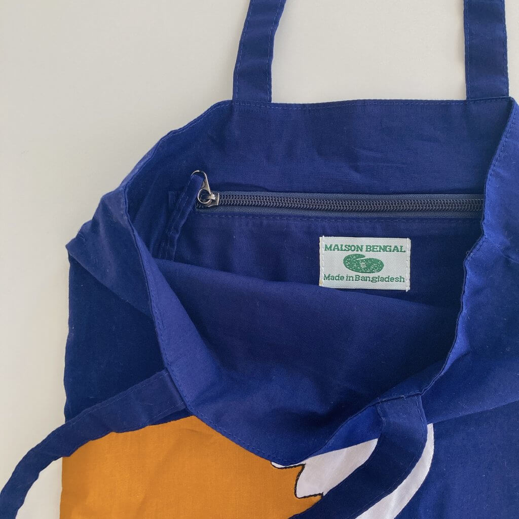 落ち着いたネイビーのトートの上にキャメル色のキツネさんという、シックな配色もお見事。動物の部分はアップリケで刺繍されている凝った作りで、動物モチーフ好きにはたまらないポップなデザインです。