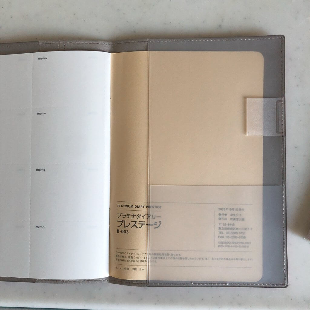 プラチナダイアリープレステージカバー綴じ込みブックとして、手帳の基本の冊子が付いていました。
