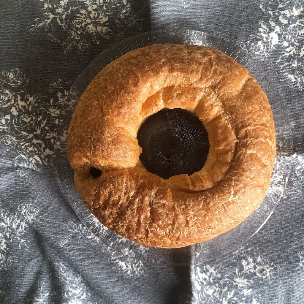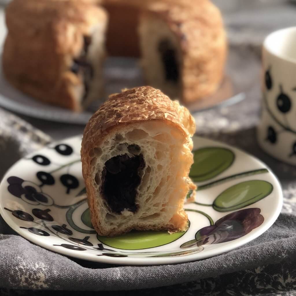 リングパンの中には、ほろ苦いチョコチップとくるみが入っています。