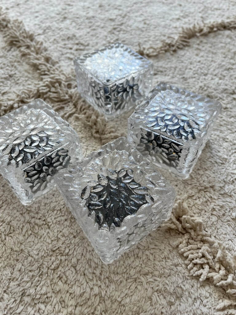 表面がクリスタルのようにキラキラ輝いていて、花びらのような模様がついています。