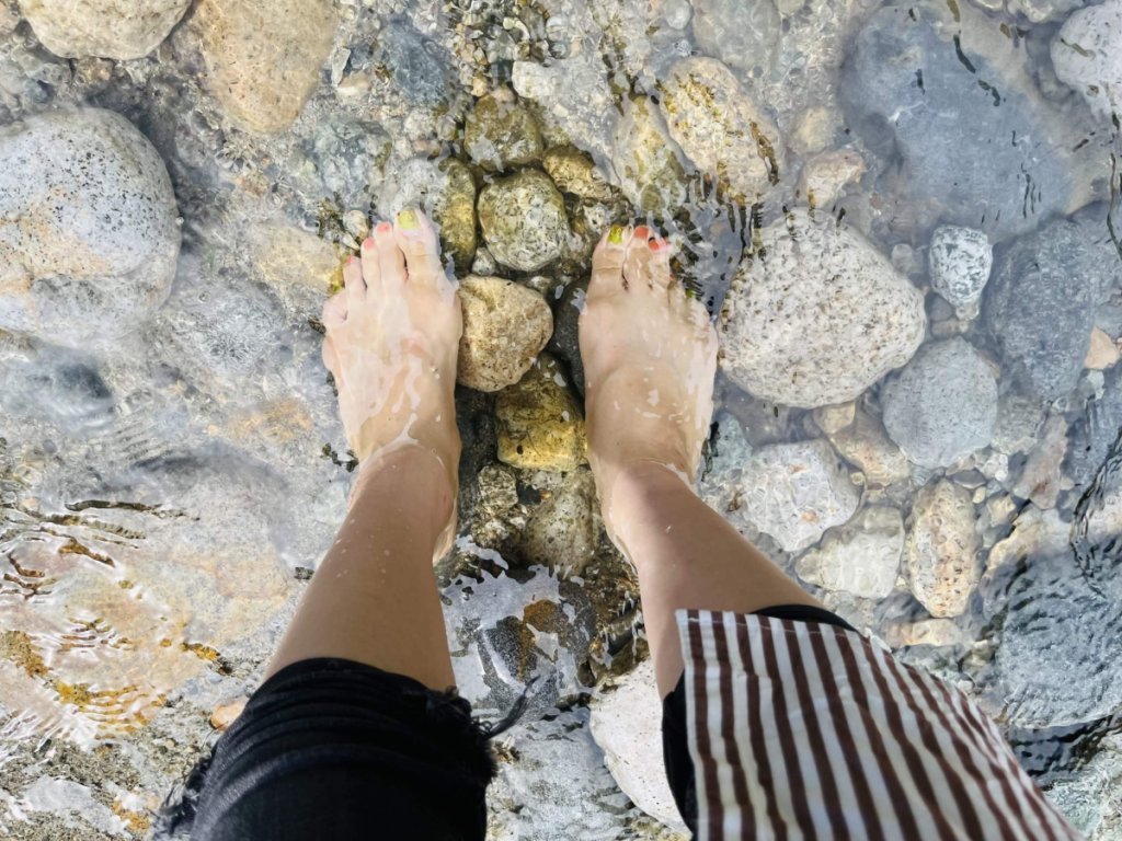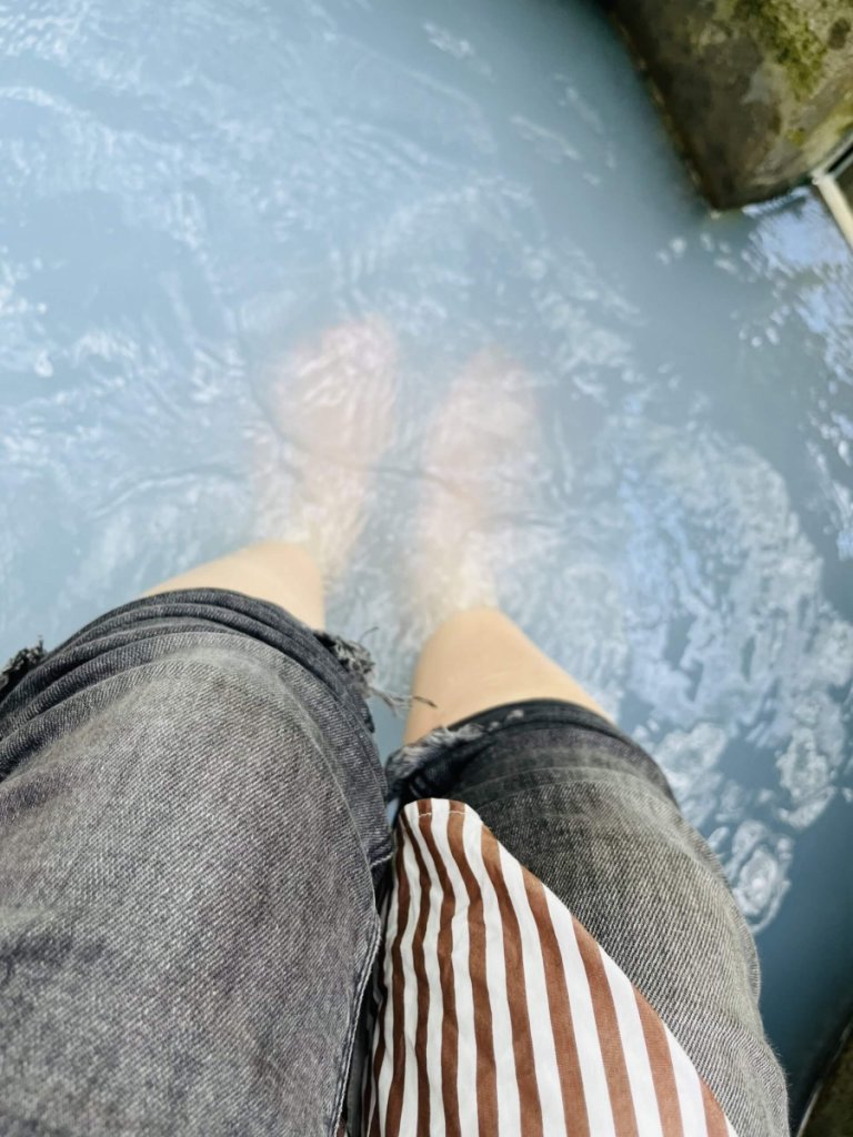 子どもたちをみてると羨ましくなって、私も足をつけてみました。