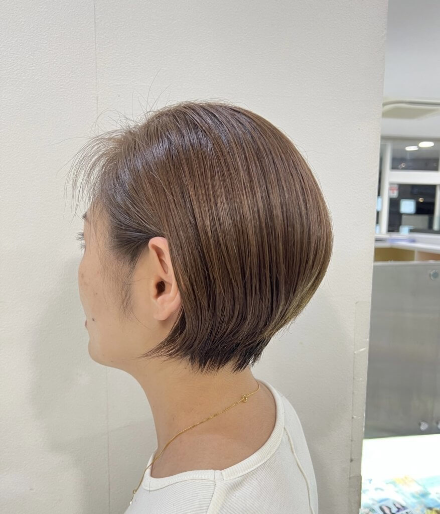 今回のテーマは「クールなショートは前髪なしがかっこいい!」とゆうことで前下がりのクールめショートにしました♡