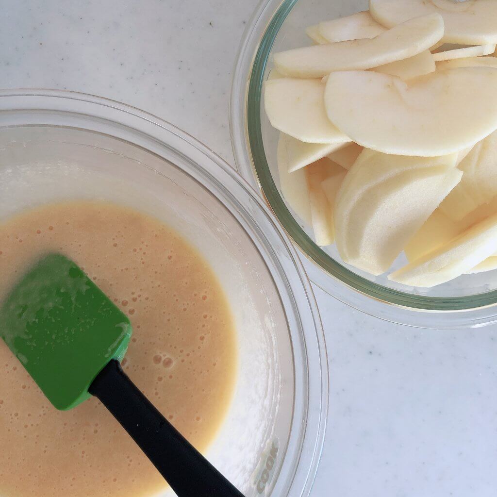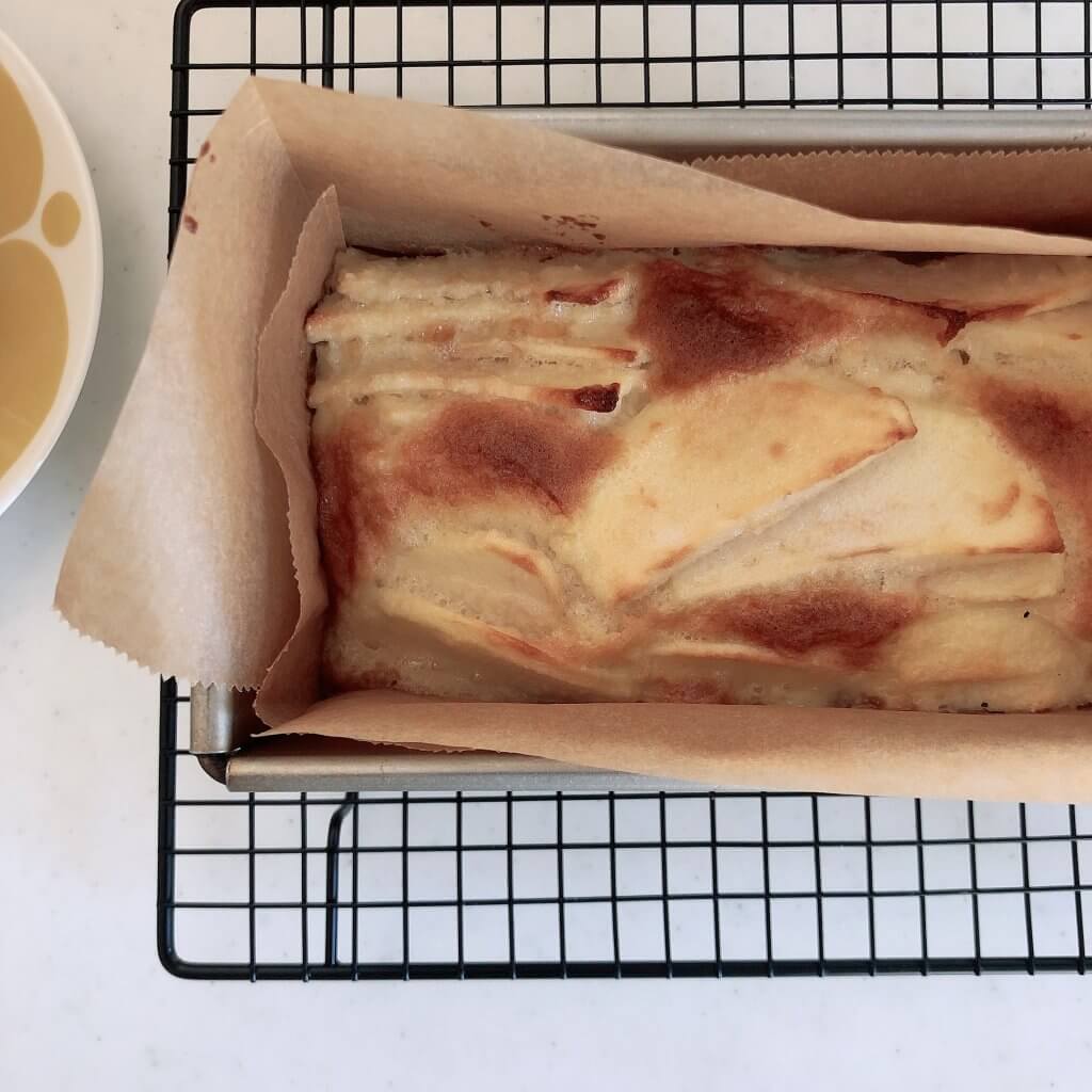 りんごをスライスして、混ぜて焼くだけの簡単なケーキを焼きました。