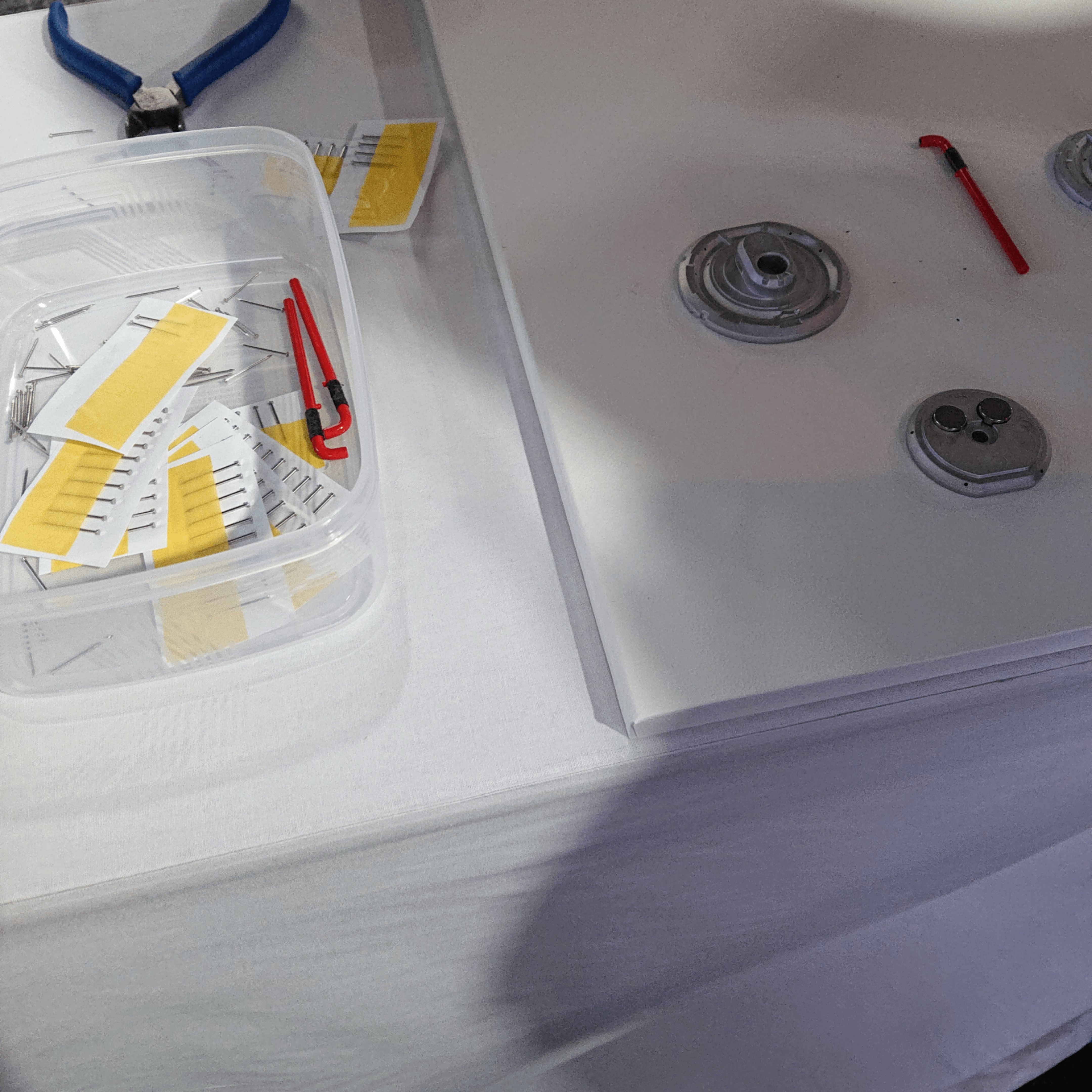 付属の専用金具で女性一人でも下準備が可能。