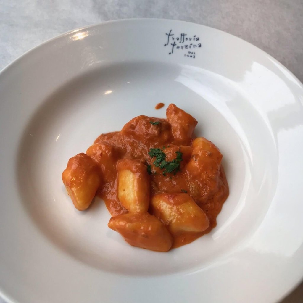 この写真の手長エビのトマトクリームソースのニョッキが絶品で、