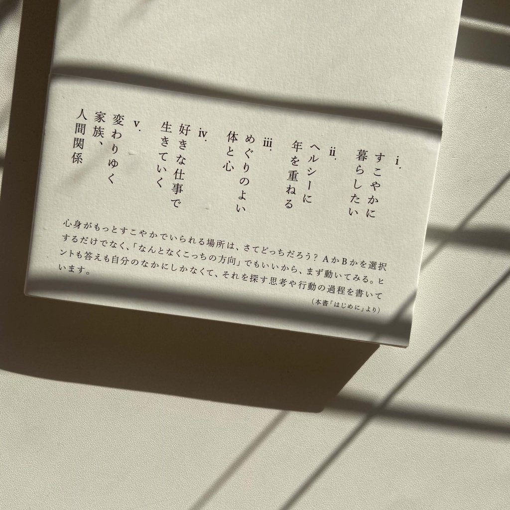 肩の力を抜いて、すこやかなほうへ進んでいこうと背中を押されるような、素敵な本です。まだまだ読み始めたばかりなので、これからじっくり読み進めたいと思います。