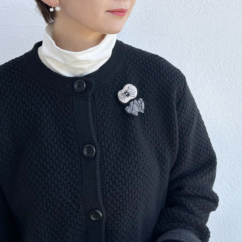 コーデがシンプルな時には、ブローチでポイント付けるのも◎