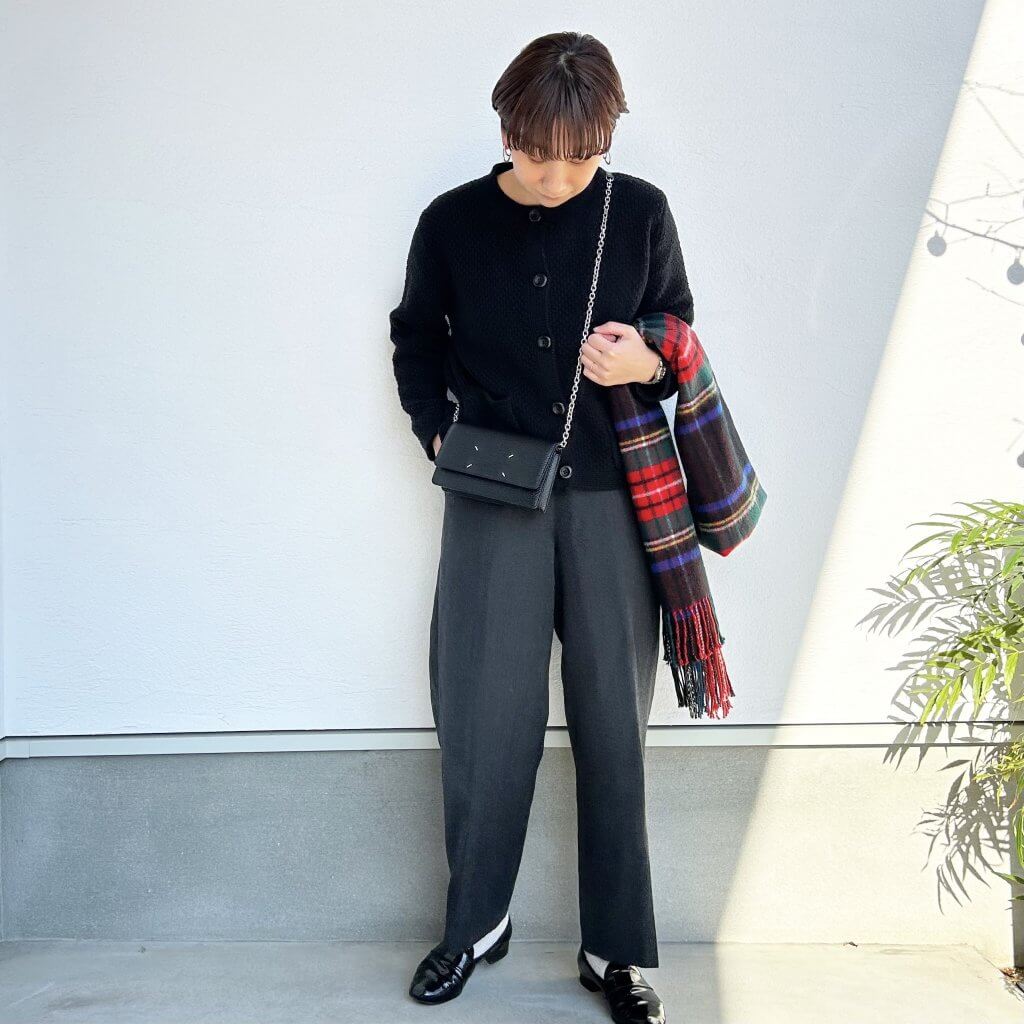 今の時期は、インナーにウールのタートルやハイネックなど着てチラリ覗かせるとかわいいかなと思います。