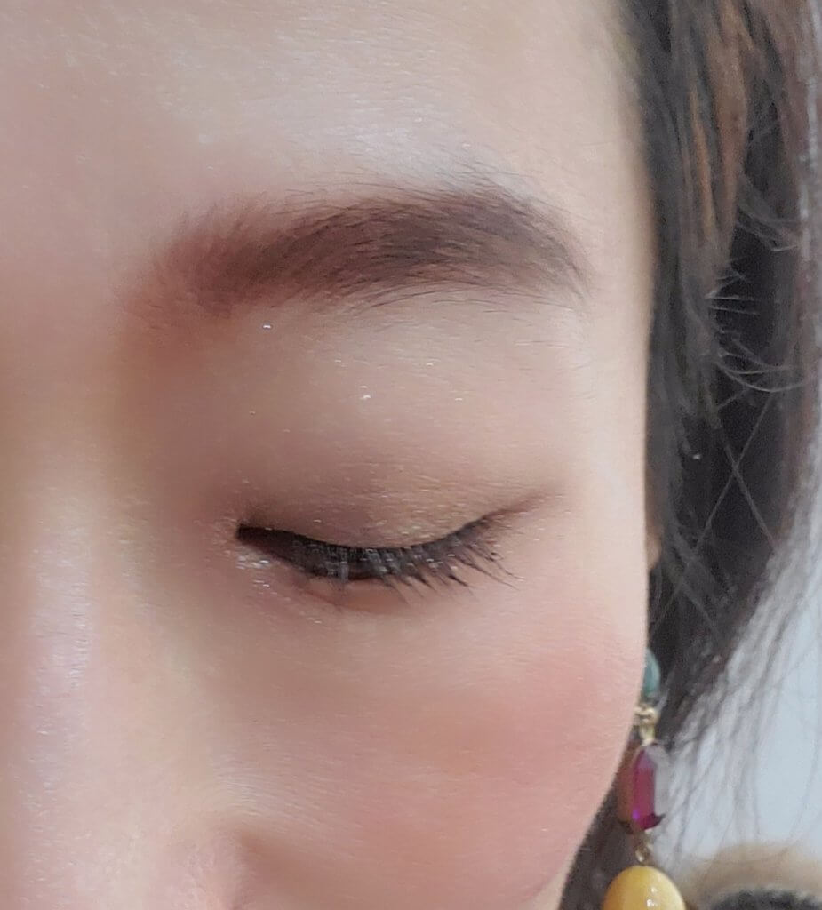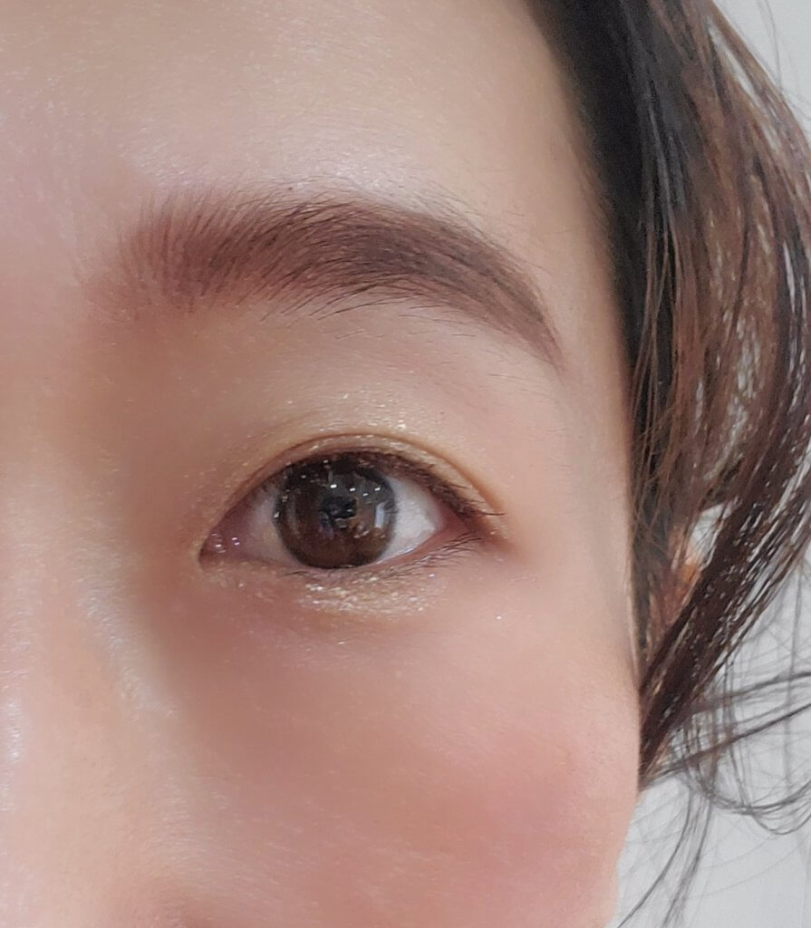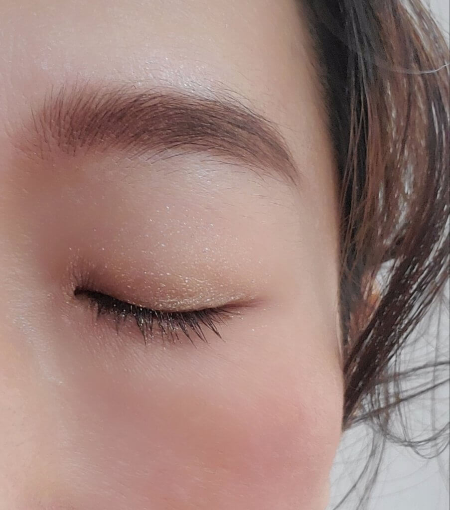 まばたきする度に上まぶたのゴールドカラーが輝いて印象的な目元に。また、部分使いなのでアイメイクがあまり得意でない…!と感じる方にもおすすめですよ!