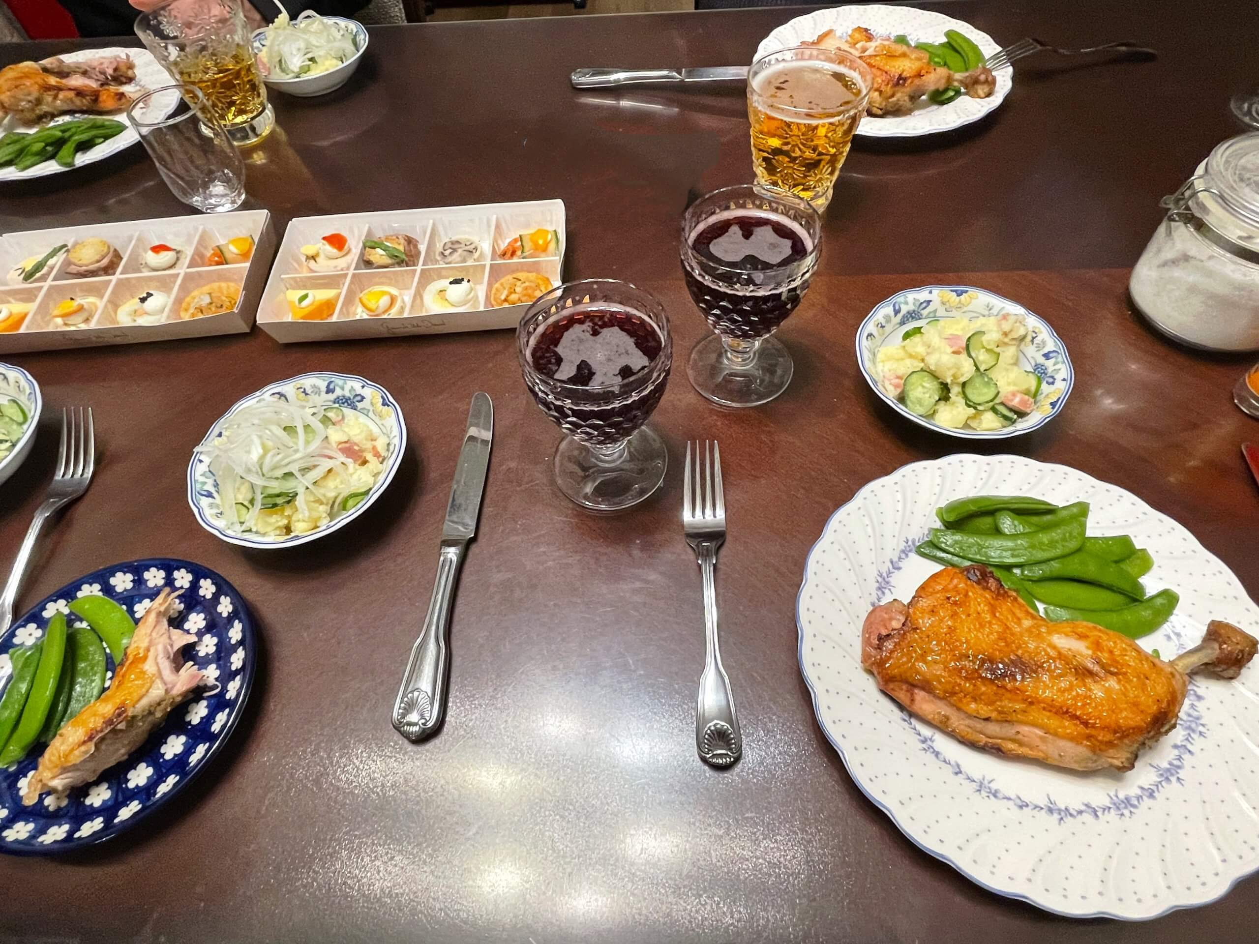 夕方には私の実家へ移動し、母作の洋食ディナー。(オードブルは市販です)