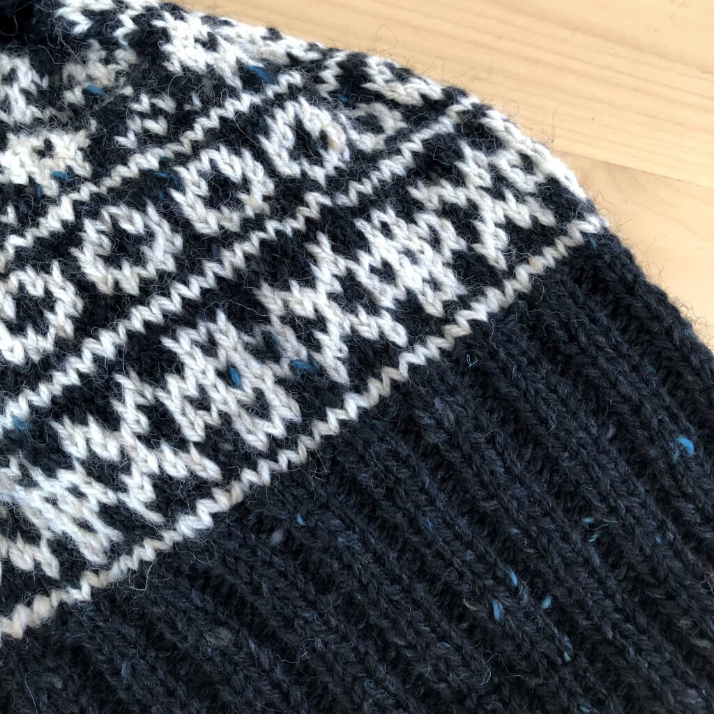 黒のみで編む部分にもアクセントが入るのが楽しい♪