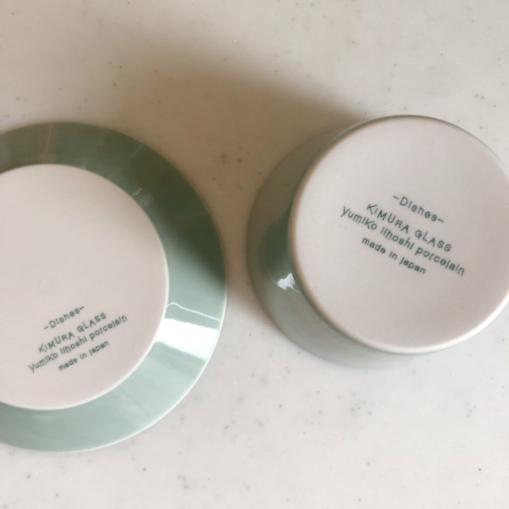 裏にはyumiko iihoshi porcelain &木村硝子店のダブルネームのロゴが入っていて、Sはプレート11cm、Mはプレート14cmと合わせてカップ&ソーサーにもなるようです。