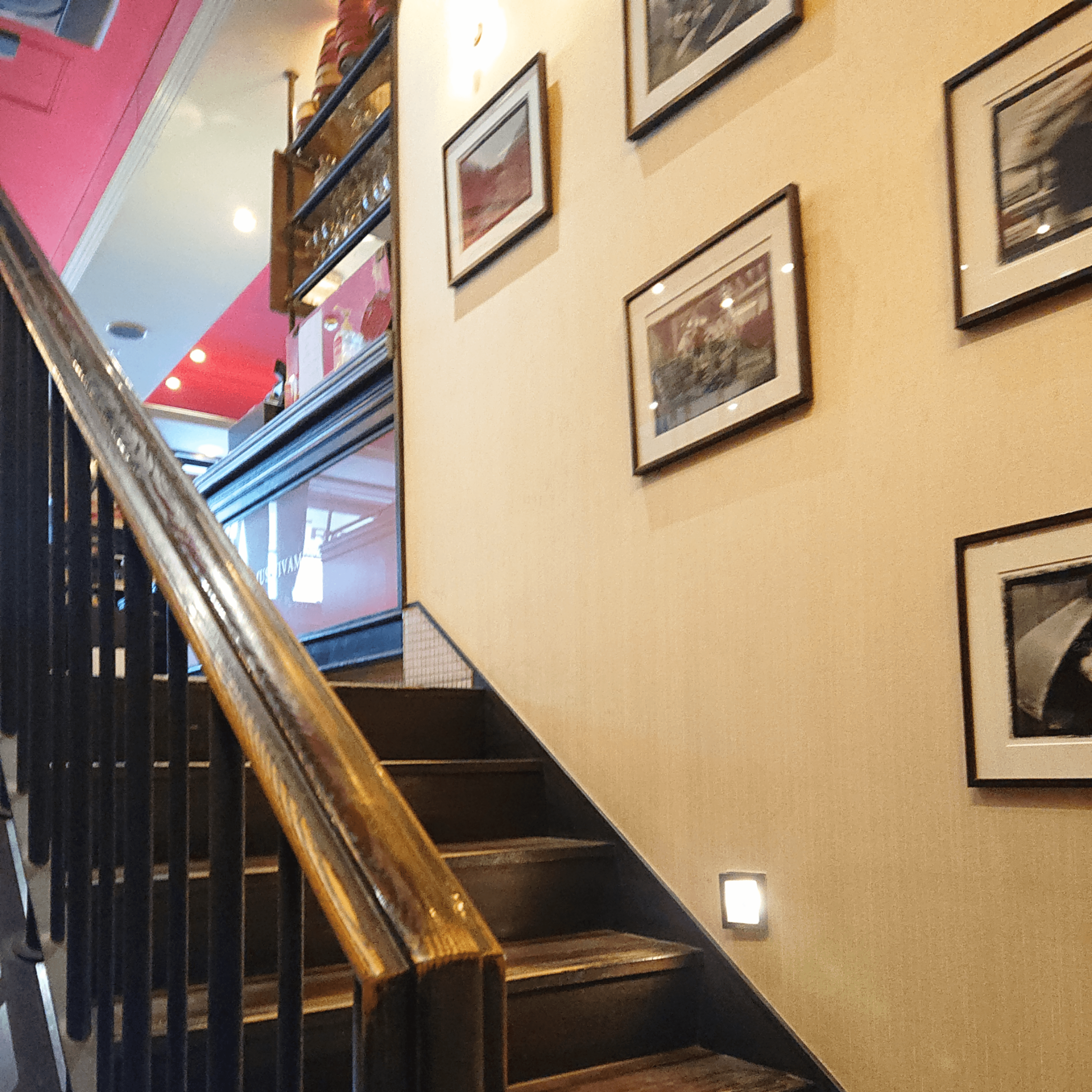 店内の椅子の座面も赤なんですよね。