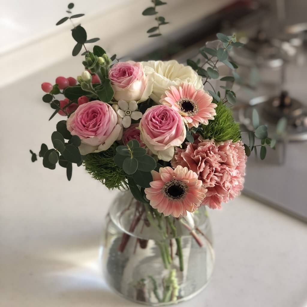 花器と一緒に購入した花束は、歌のコンクールで賞にはいった娘へのサプライズ。