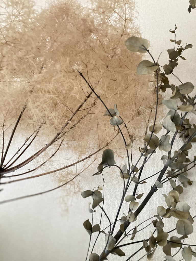 日が入りにくく、観葉植物を置きにくい場所に、ドライフラワーや枝物はぴったりですね。