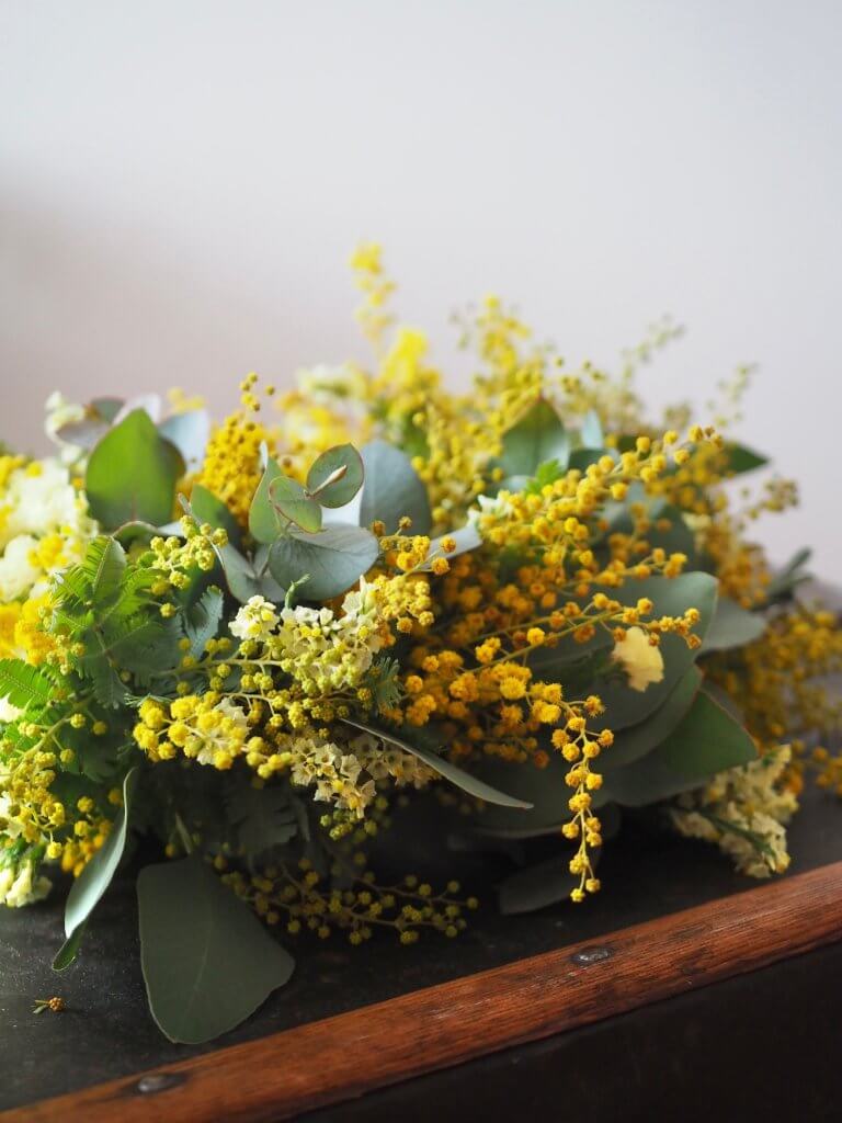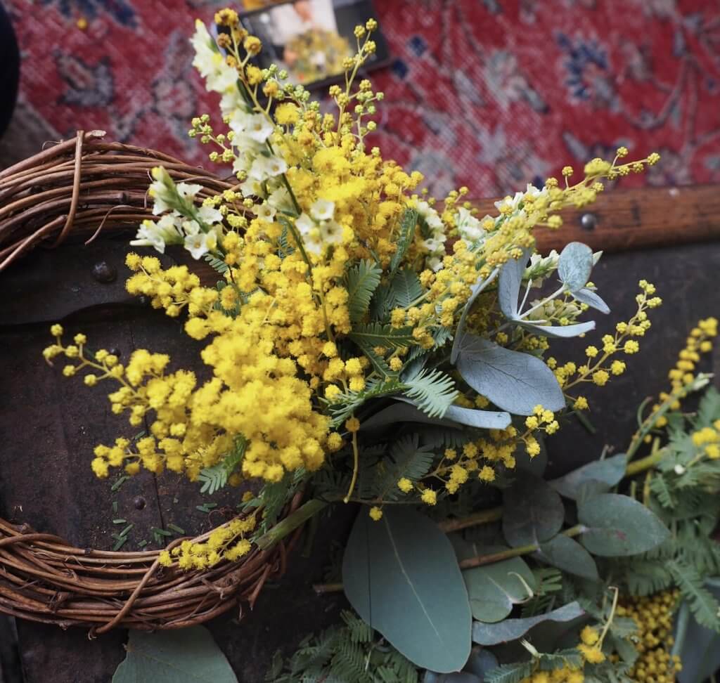 さて、先日家でミモザのリースを作りました◎