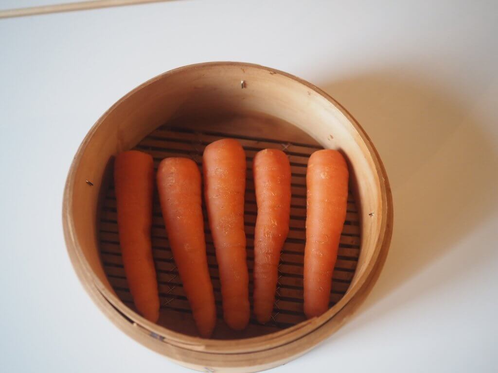 テレビでにんじん農家の方が紹介されていたのがおいしそうで、挑戦。にんじんを蒸して…。