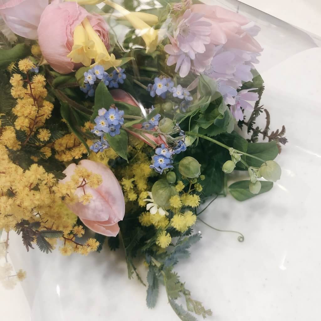 届いた花束は、たくさんの種類のお花が束ねられていました♡そのままいけても、別々にいけても可愛い花たち。