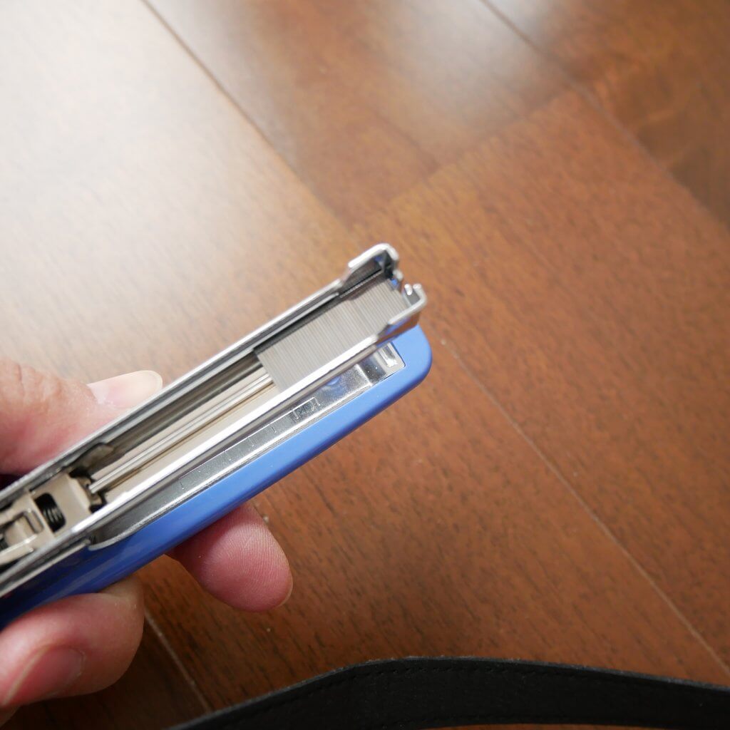 ホチキスは180度開くタイプのものを使用します。ホチキスの針は壁美人に付属でついていました。