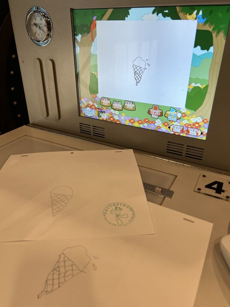 2コマの絵を自分で書くことができ、完成するとスタッフの方が画像を取り込んでくださります。