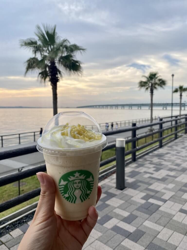 夕日を見ながら飲んだフラペチーノも最高においしかったです♬