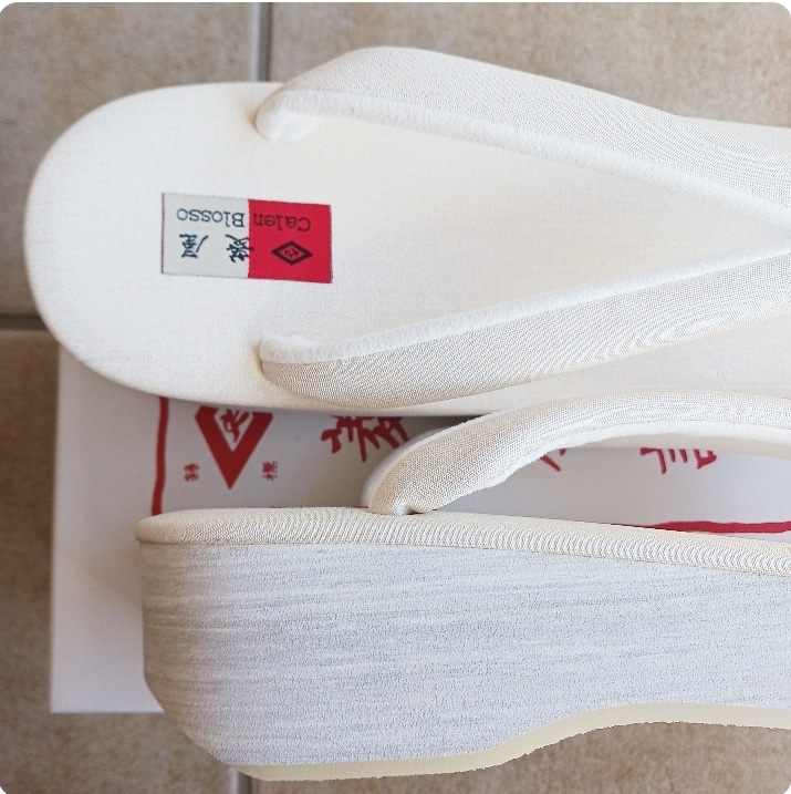 また、濡れた路面を歩いた際、なるべく着物の裾をぬらさないように、踵も斜めにカットしてあるそう。もちろん本降りの雨にはもったいないので(笑)雨草履を履きたいところですが🤣
