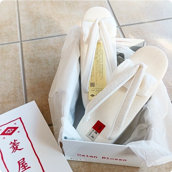 雪のような白さの中にも、どこか温もりある柔らかい白に感じるカレンブロッソの白草履。昨年プレゼントでいただき、今年やっとおろすことに♪