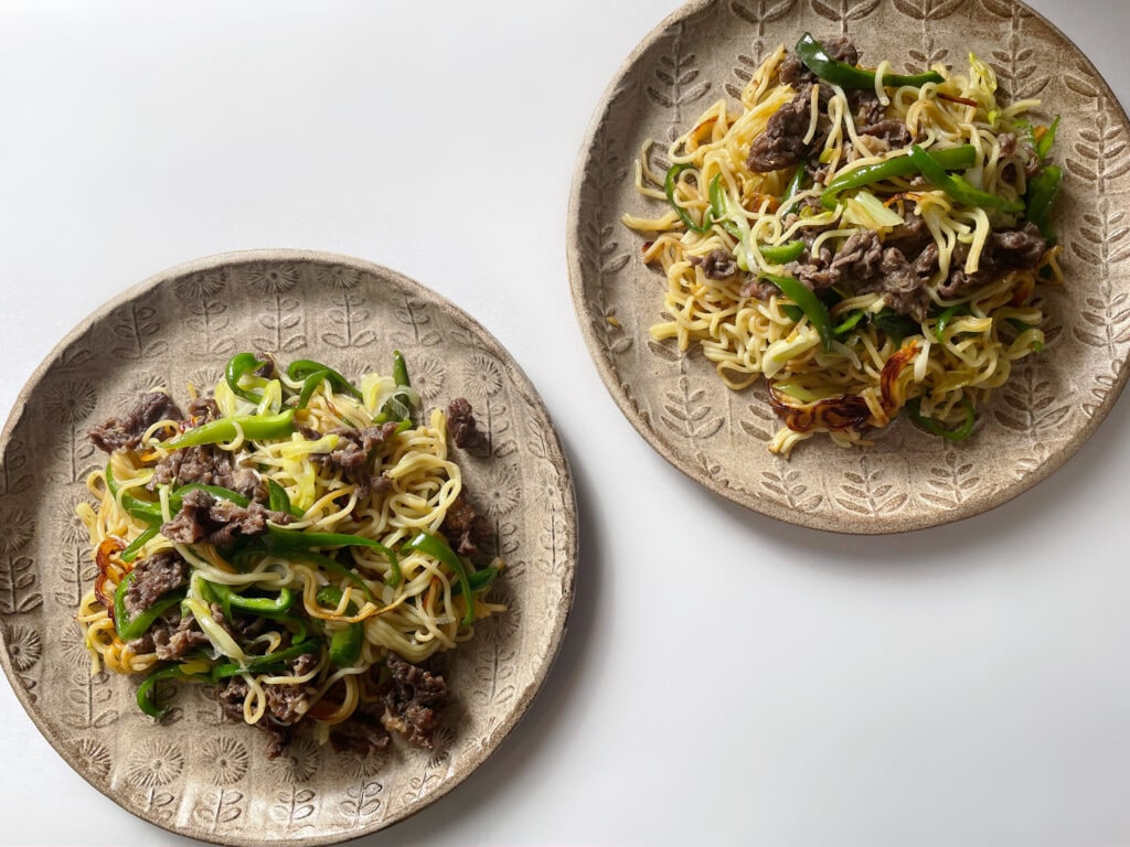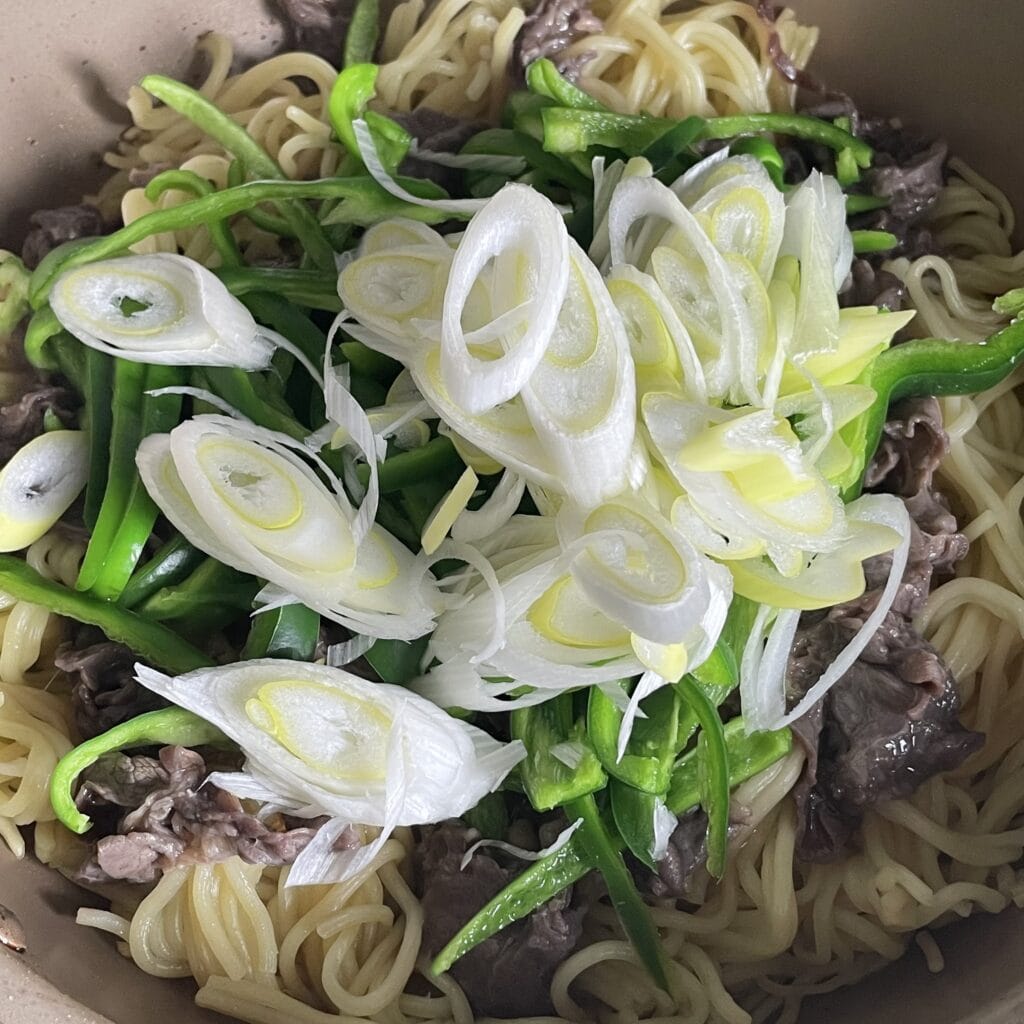お肉もたっぷりだけど、ピーマン・ネギもたくさん入っているヘルシー焼きそばです。
