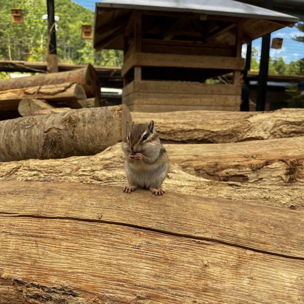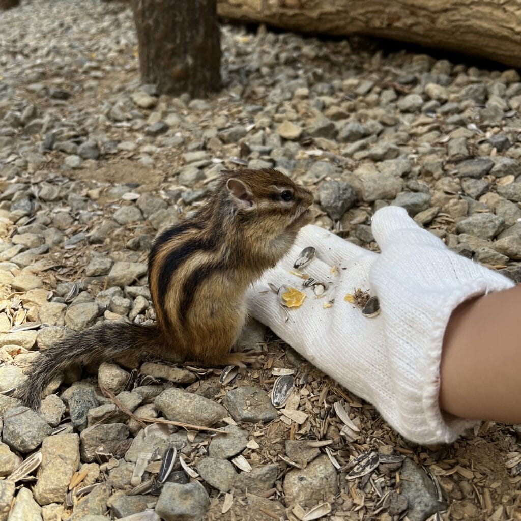 手の平に餌を出してじーっと待っていると、リスが近寄ってきてくれるんです!