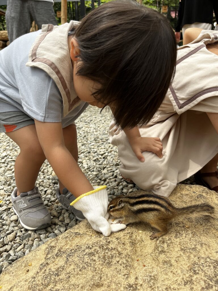 頬張る姿がなんとも可愛らしい…!子供たちも、初めてのリスと触れ合いが嬉しくて夢中でした!