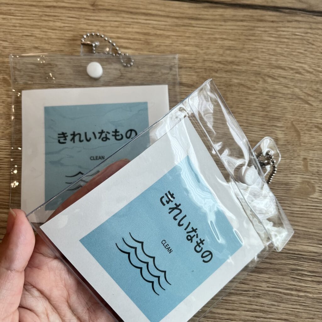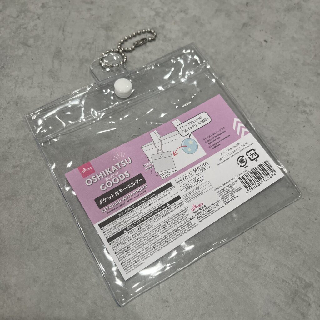 裏と表をひっくり返して使うため、ボールチェーンのホルダーを探しました。イメージにピッタリだったのはダイソーで見つけた「推活ホルダー」