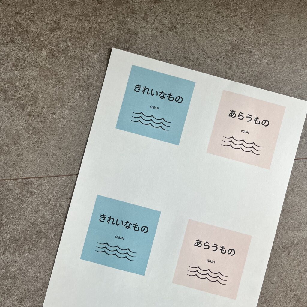 くるっとひっくり返すと「あらうもの」と「きれいなもの」の表示を切り替えできるようにすることで、カゴの使用状態を自由に変えることができます。