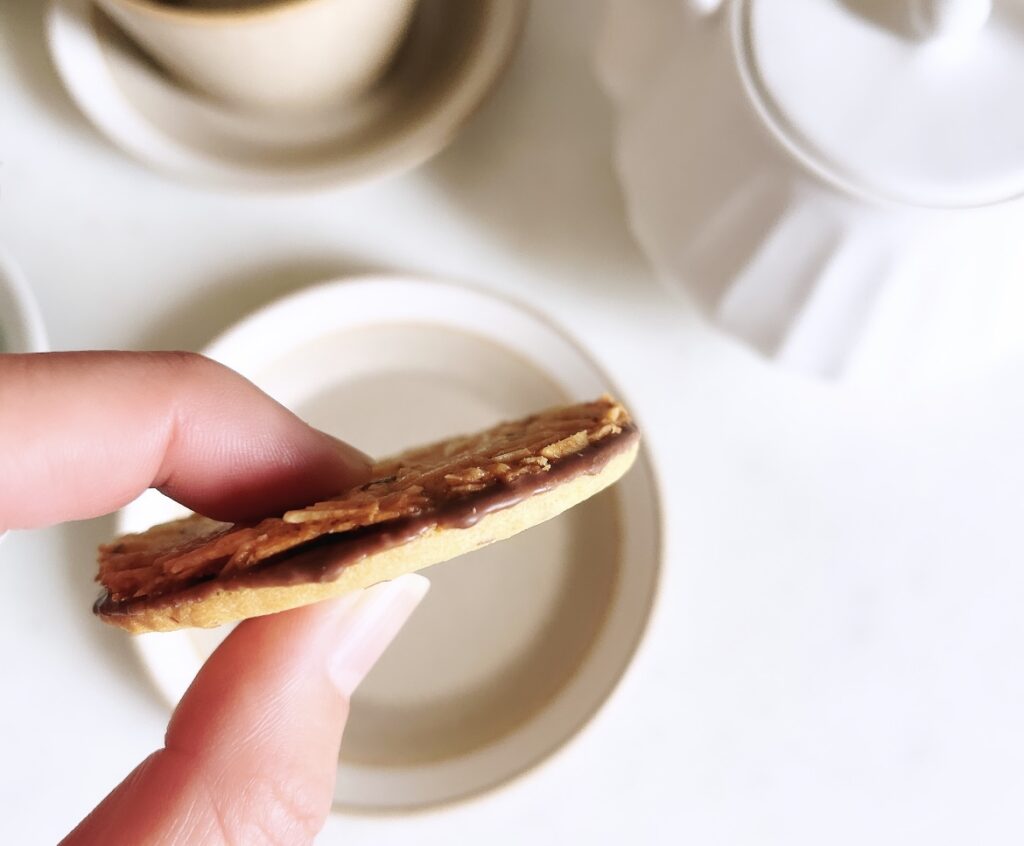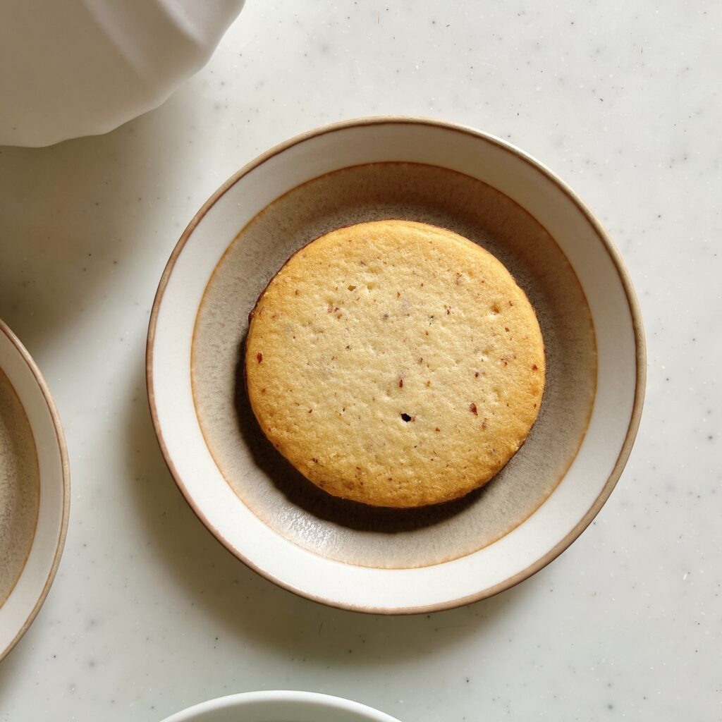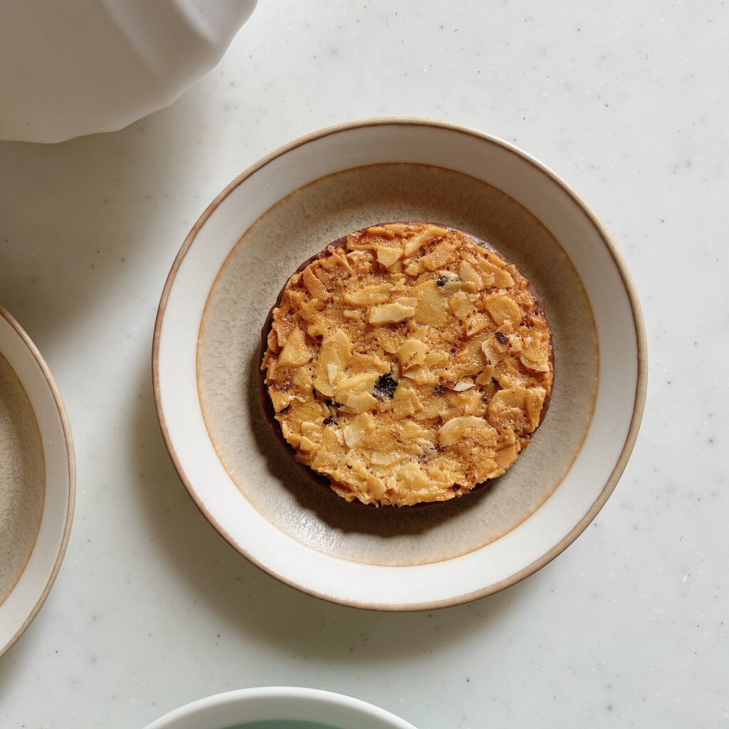 生地にアーモンドパウダーを混ぜ込んだザクザクの薄焼きクッキーで、