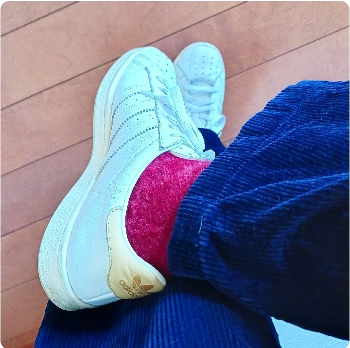 足元はお気に入りのふわふわ赤靴下で♡