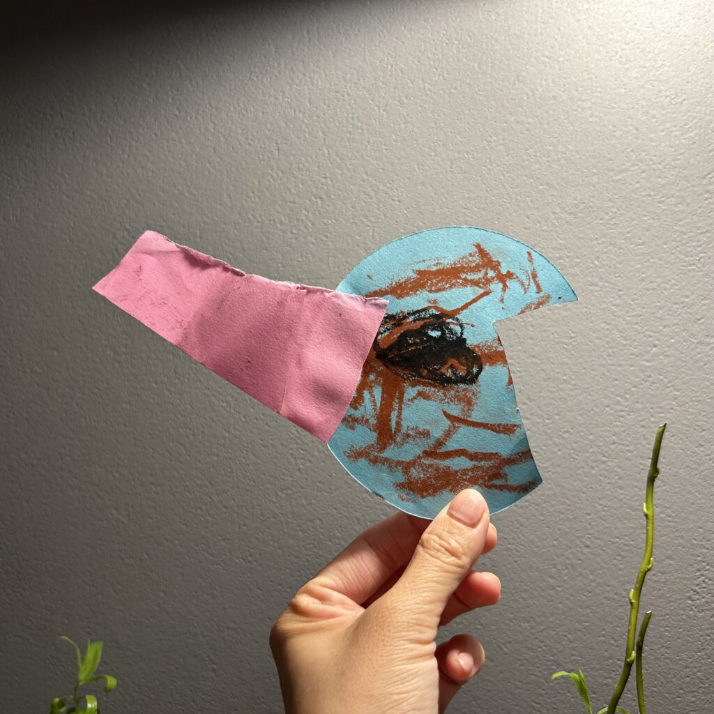 息子はなぜか魚系を作る時、必ず裏表に目を描いてくるので、スクラップブックにしっかり糊付けできず。このタイプはマスキングテープを使います。