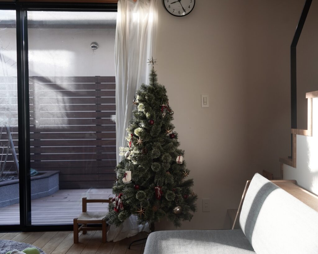 これまではテレビ横に設置していましたが、今年は位置を階段下に変えて、ちょっとした模様替え気分を楽しんでいます。