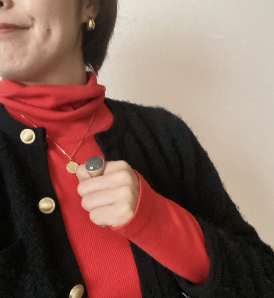 わたしはガタイがよく首がぴったりしているタートルが苦手。UNIQLOのシームレスリブタートルはくしゅっとできてお気に入りです。