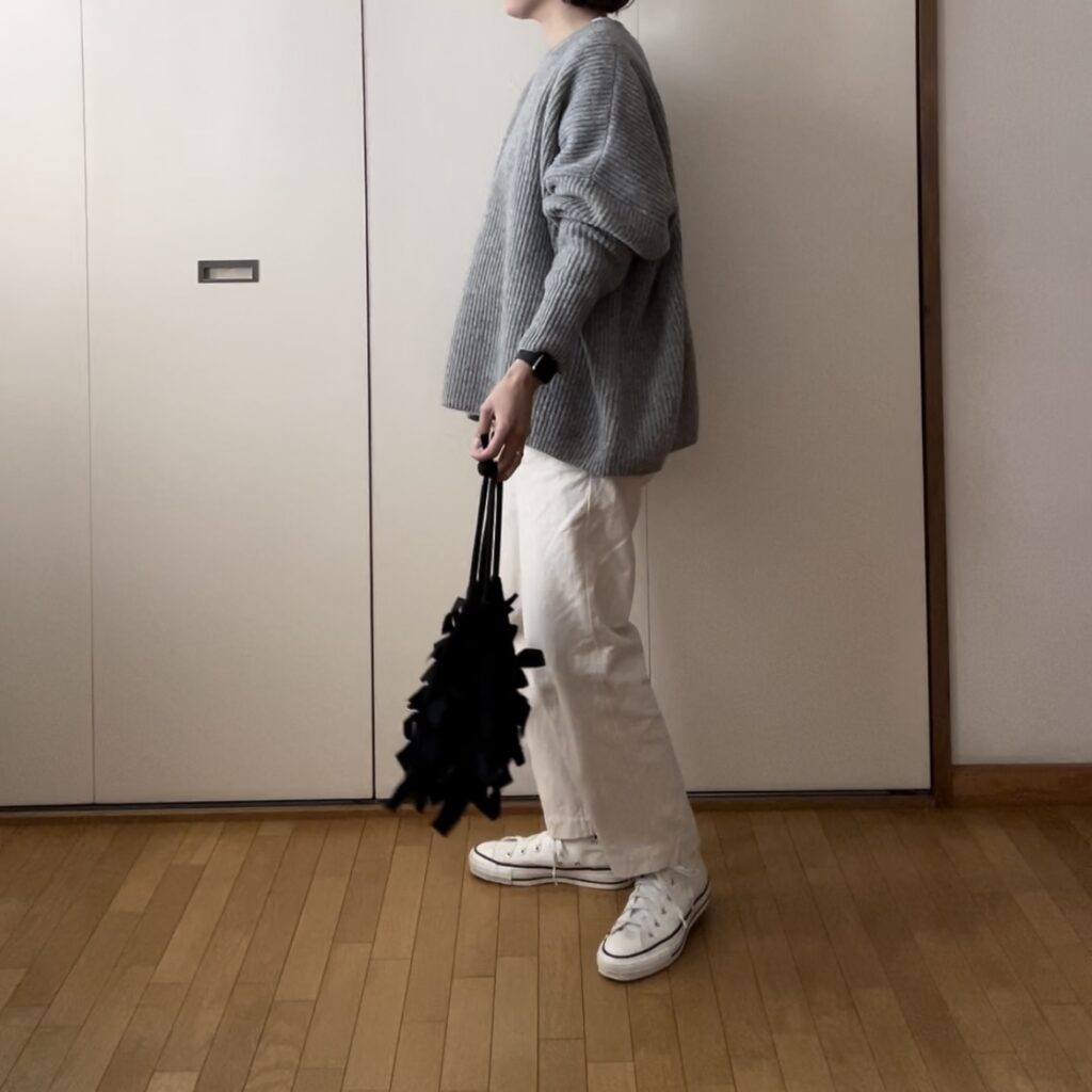 いわゆるビッグシルエットというと、’着られてる感’が出てしまいがちですが、その辺りのバランスがほんとうに秀逸。