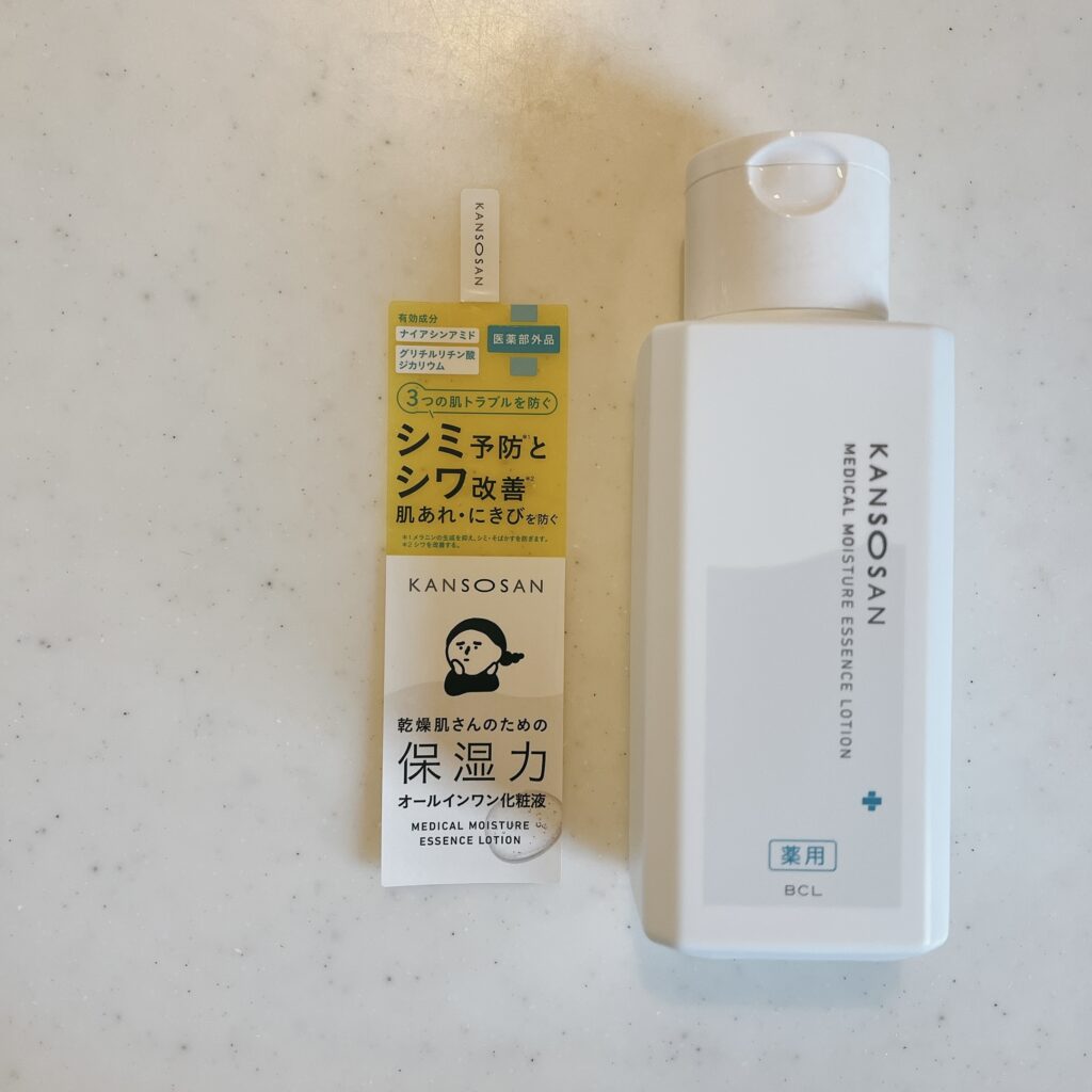 シミ予防とシワ改善、肌あれにきびを防ぐKANSOSAN。有効成分は、ナイアシンアミド、グリチルリチン酸ジカリウムとのこと。