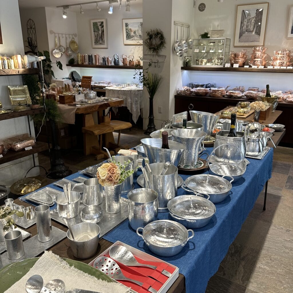 ひとつひとつ丹精込められてつくられた商品は息をのむほど美しく、うっとり。ゆきひら鍋に代表される模様はすべて職人さんによる手仕事のものだそうです。