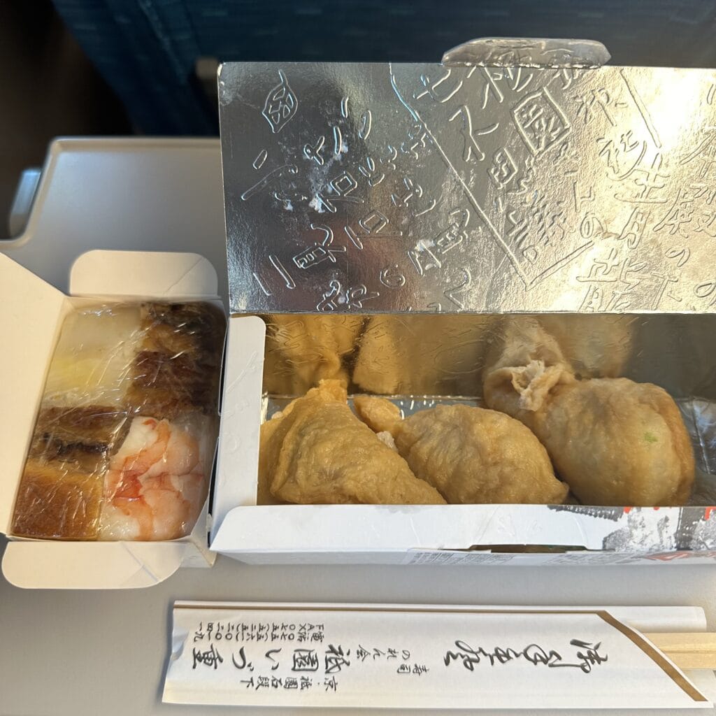 新幹線で京都旅に思いを馳せながらひとりで食べるお寿司は非日常も手伝って格別でした。