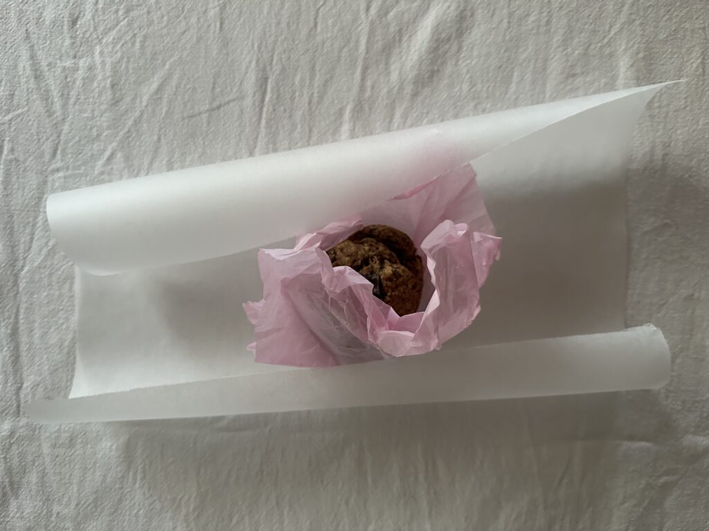 いつかも使ったダイソーのお花紙(ピンク)と、クッキングペーパー(白)で二重に包んでみました。