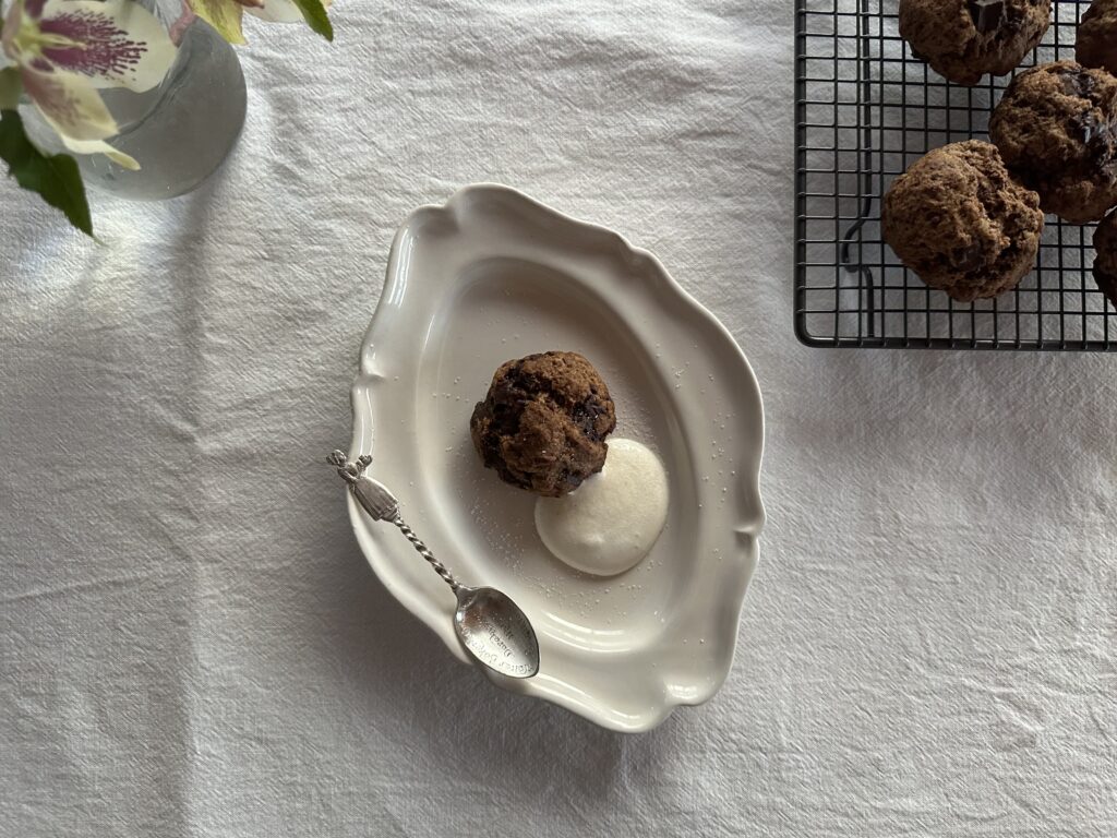 ゆるく泡立てたクリームを添えて、焼き立てをいただきました。