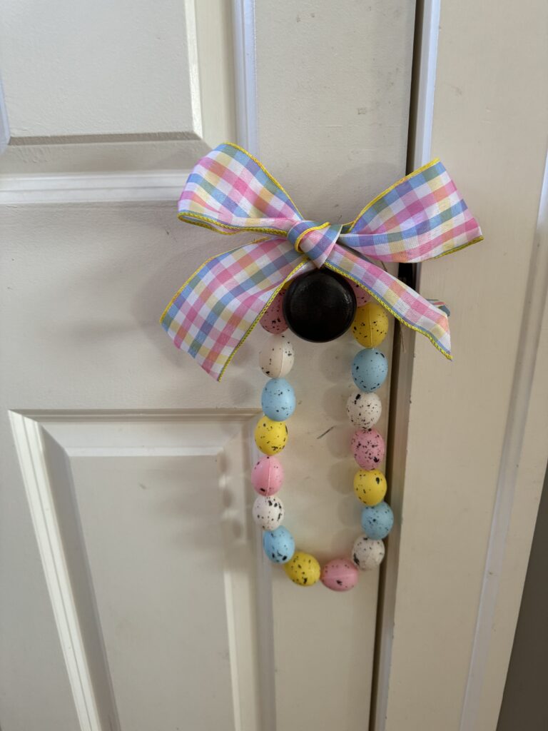 なのでイースターデザインのリボンをつけてドアノブに引っ掛けています。
